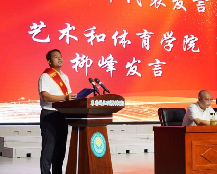 省优秀教师付红波和受表彰的师德师风标兵代表、优秀教师代表、优秀教育工作者代表、优秀辅导员代表、先进集体代表分别发言。他们分享了自己对教师的责任、使命、担当、情怀的理解和坚守,表示未来将继续怀揣对教育的热爱与执着,继续提升师德修养和业务水平,以更加饱满的热情投入到教育事业中,为阜阳幼专辉煌的明天、为国家的教育事业贡献自己更大智慧和力量。