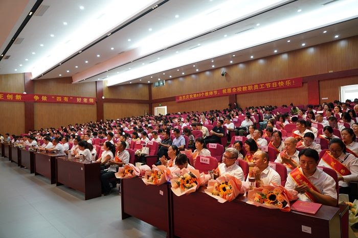 9月9日,在第40个教师节来临之际,我校召开庆祝第40个教师节暨表彰大会,向全体教师致以节日祝福和崇高敬意。校党委书记董志诚出席会议并讲话,大会由校党委副书记、校长汤志主持。校领导于华献、陈绪龙、许宗志、刘海涛、徐常恺,各部门、学院党政负责人,全体教职员工,各学院学生代表参加大会。