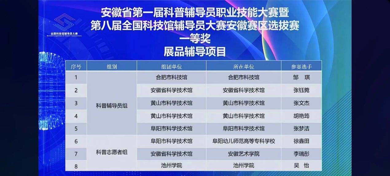 本次大赛由安徽省科学技术协会、安徽省总工会、共青团安徽省委员会、安徽省妇女联合会、安徽省卫生健康委员会联合主办,安徽省科学技术馆承办,旨在提升全省科普辅导员的专业素养和服务能力,促进科普事业的繁荣发展。比赛内容涵盖了科普知识讲解、科学实验演示、科普活动策划与执行等多个方面,全面考验了参赛者的综合素质和实践能力。来自省直和中央驻皖单位、省属高校、省属企业、地市科协和卫生健康委、全省各级科技馆等单位的众多代表队报名参赛,经过激烈的初评和终评,最终决出了优胜者。