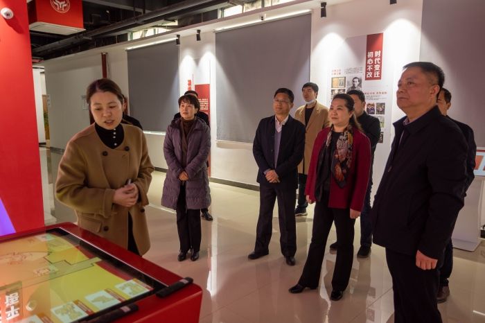 杨善竑一行参观了中国共产党人精神谱系、新时代传习所、红色影院、AR互动体验区,体验了“王家坝抗洪救援”、“红军爬雪山”、“狼牙山五壮士”等虚拟仿真思政课程。