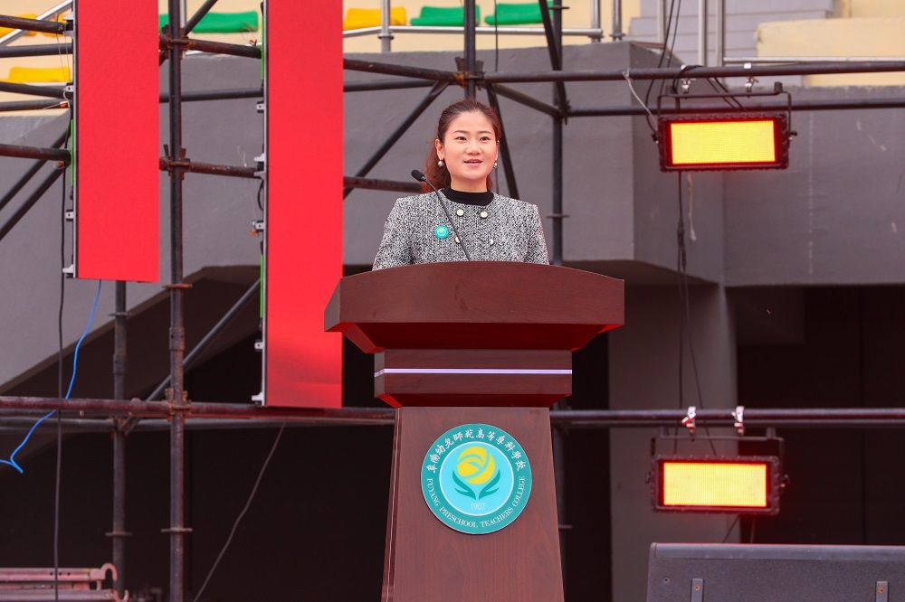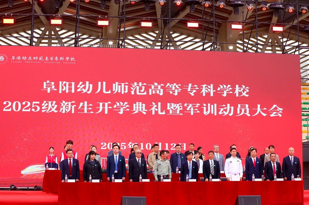 汤志向新同学的到来表示热烈的欢迎,以《厚植家国情怀 书写无悔青春》为题作开学讲话。他指出,阜幼专是历史悠久、薪火相传的百年老校。十年升格高专以来,我校砥砺前行,紧抓改革与发展,成果年年翻新。搬迁岳家湖校区更是开启学校历史新篇章的重要里程碑,新校区、新环境、新气象,未来学校将始终锚定“强内涵、促转型、创双高、升本科”的战略目标,持续推进安徽省地方技能型高水平大学和安徽省“双高”院校建设,奋力书写阜幼专的新篇章。他希望,同学们能明德立志、胸怀家国,在强国有我的担当中展现风采;能追求卓越、与时俱进,在刻苦求真的道路上永不懈怠;能向阳而生、积极乐观,在沉淀自我的过程中坚韧前行;能严于律己、刻苦训练,在完成军训的磨砺中得到淬炼。