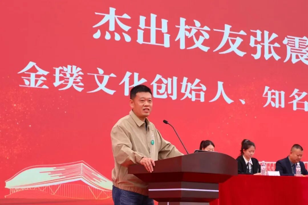 典礼上,1994级杰出校友、上海金璞文化传播有限公司负责人、知名导演张震发言,他回顾了自身的求学与工作经历,以亲身经验鼓励同学们要敢闯敢拼,发挥特长,并主动拥抱新事物,方能成就未来不一样的自己。