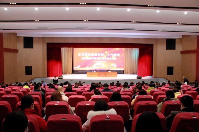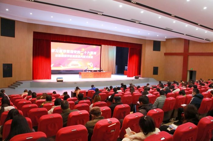 校领导、全体教职工、学生代表参加报告会。(图文:韩笑 审核:刘志伟)