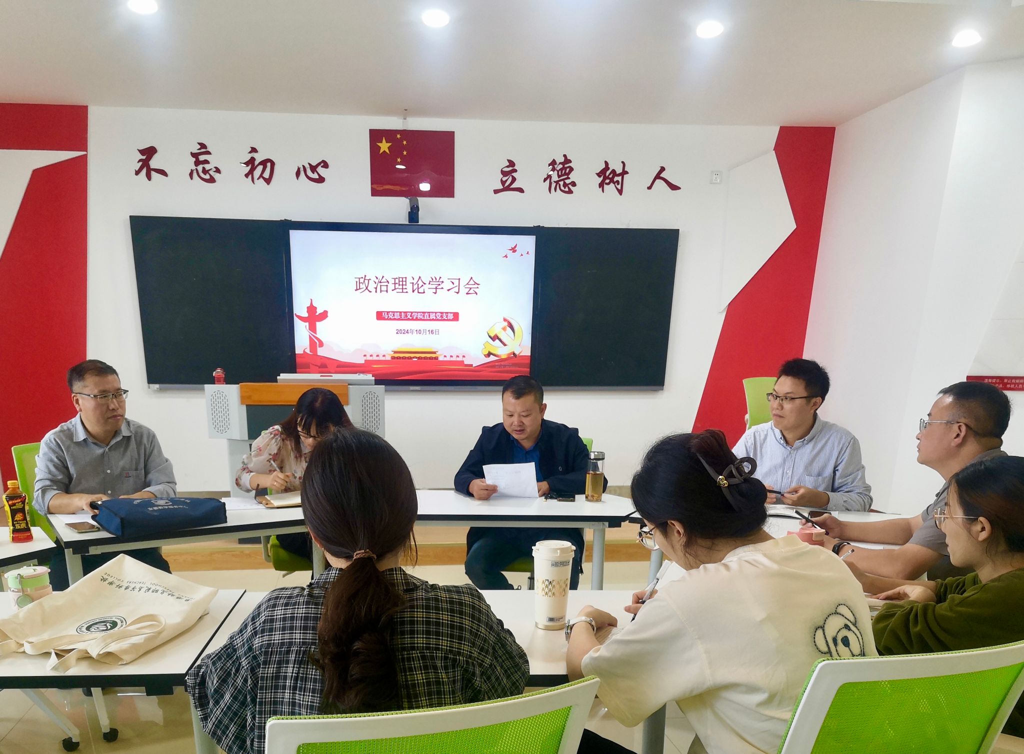 为深入学习贯彻党的二十届三中全会精神,10月16日下午,马克思主义学院党支部召开理论学习会议,会议在马院虚拟仿真实训室举行,马院党支部全体党员、学院全体教师参加会议,会议由学院副院长漆学鹏主持。