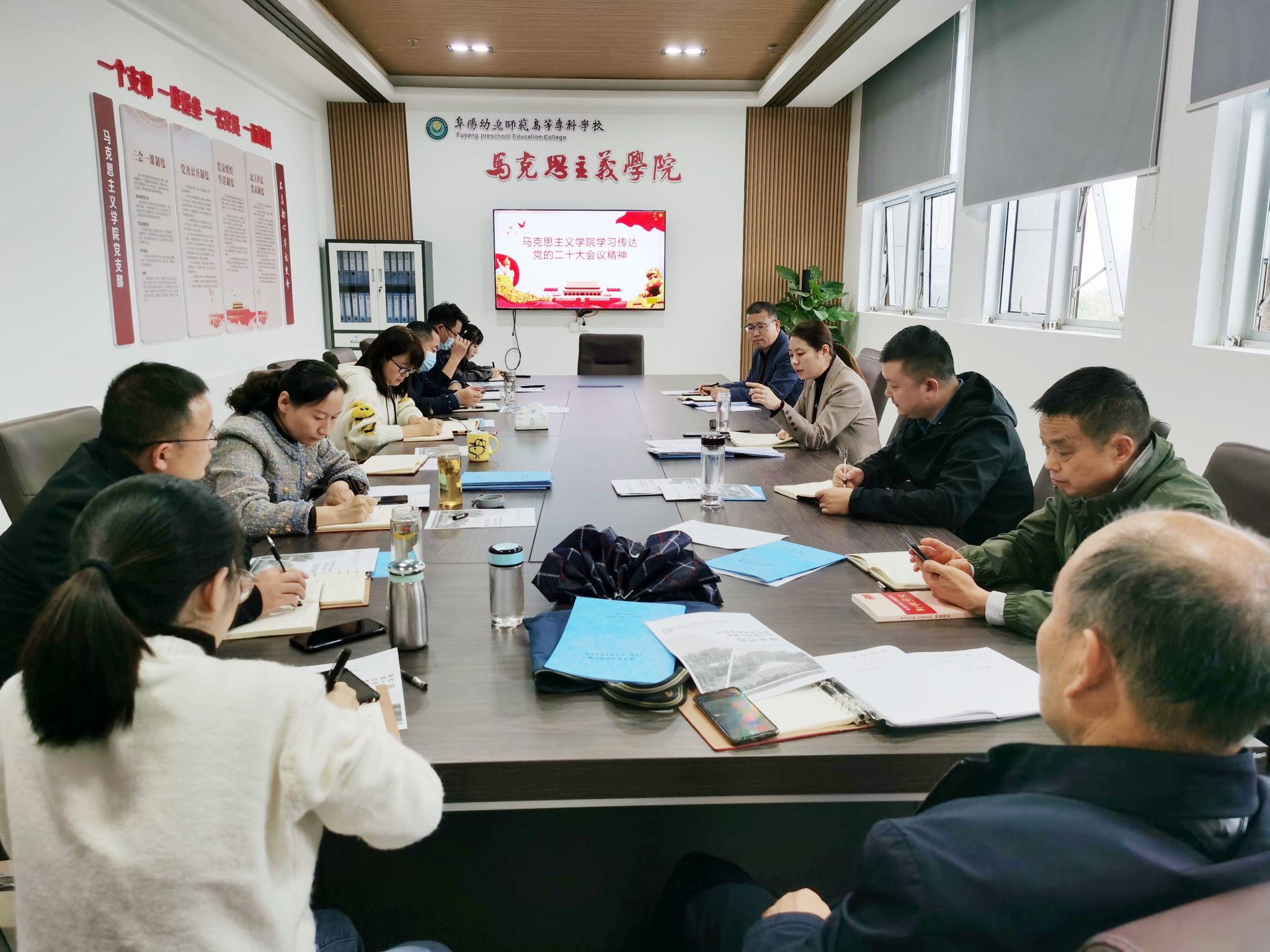 马克思主义学院把学习宣传贯彻大会精神作为当前和今后一个时期的首要政治任务和头等大事,组织全体教师开展系列学习活动,将学习贯彻党的二十大精神与思政课教学这一本职工作紧密结合,自觉做好党的二十大精神“三进”工作,充分发挥思政课立德树人关键课程作用。会议进一步明确了下一阶段做好党的二十大精神进课堂工作的目标、思路、举措,学院将通过一手抓顶层设计一手抓落地见效,切实推动教师将党的二十大精神主动学起来、深入研起来、生动讲起来。