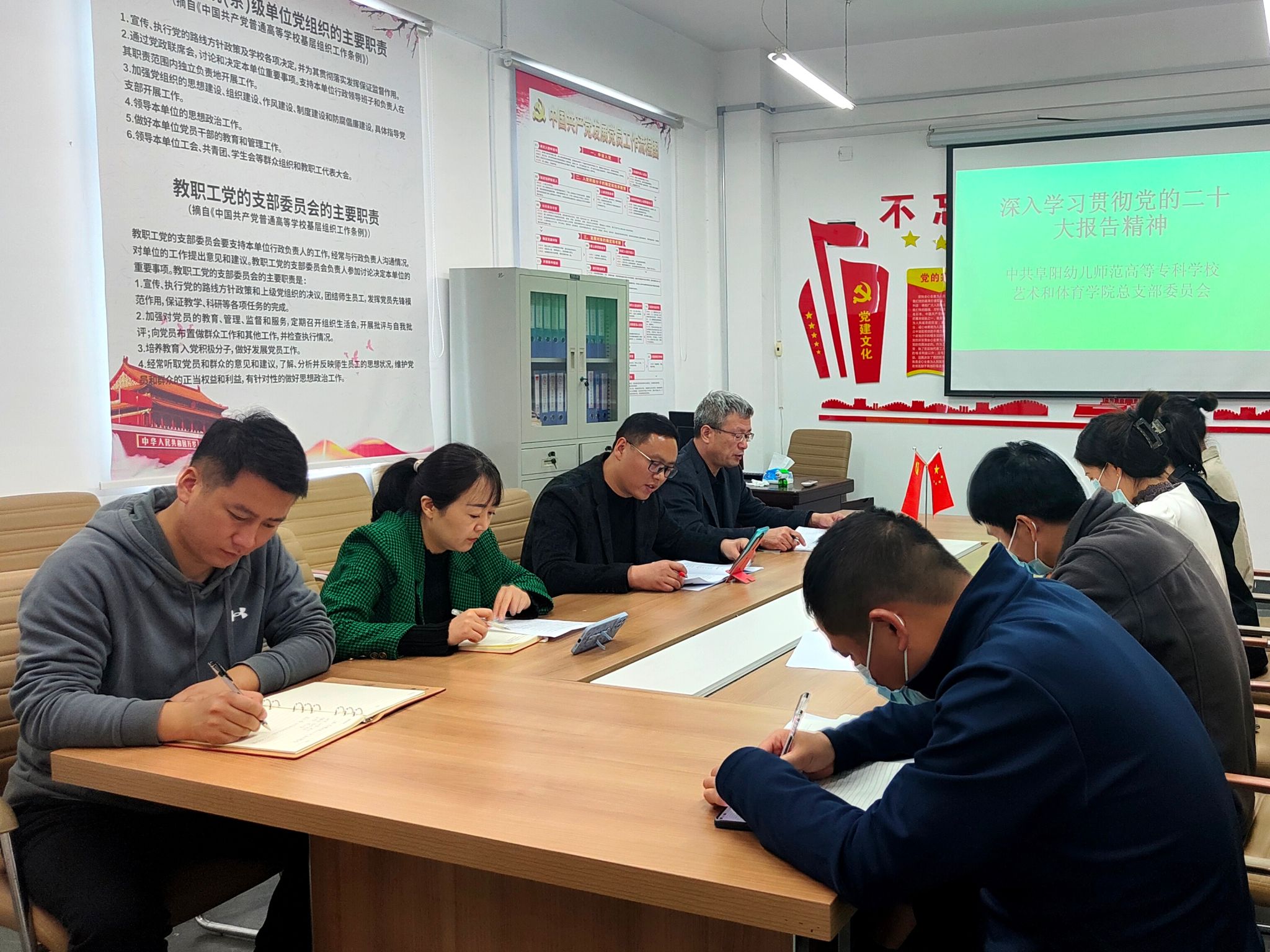按照省市以及学校党委工作要求,11月2日下午3时,艺术和体育学院在德馨楼318党员活动室召开学习党的二十大精神会议,会议采取线上线下同步学习的形式进行,全体师生党员参加会议,会议由艺术和体育学院党总支负责人范云峰主持。校党委委员、纪委书记孙驰参加学习会。