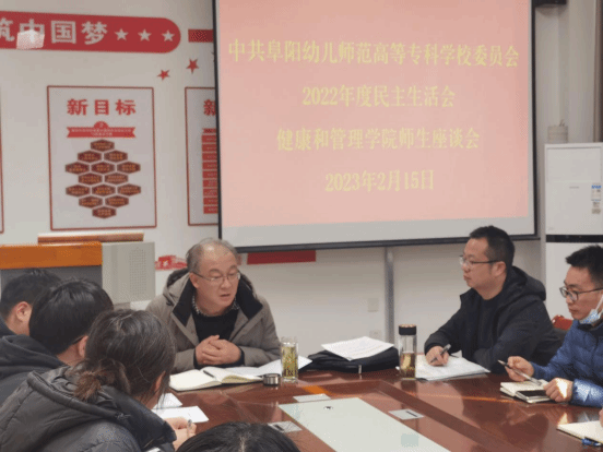 为认真做好2022年度民主生活会征求意见、调查研究工作,推动学校党委领导班子建设获得新提升,推进学校高质量发展,2023年2月17日下午,校党委委员、副校长陈绪龙深入健康和管理学院,主持召开了2022年度民主生活会会前师生座谈会。健康和管理学院教师和学生代表参加了会议。